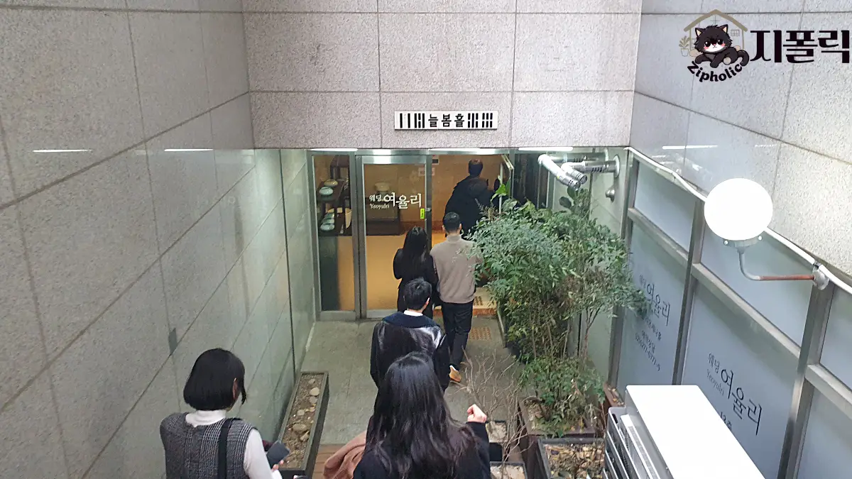 우리는 늘봄연회장으로 가서 식사를 했는데, 에스컬레이터를 타고 내려가서 계단을 타고 가면 나온다.