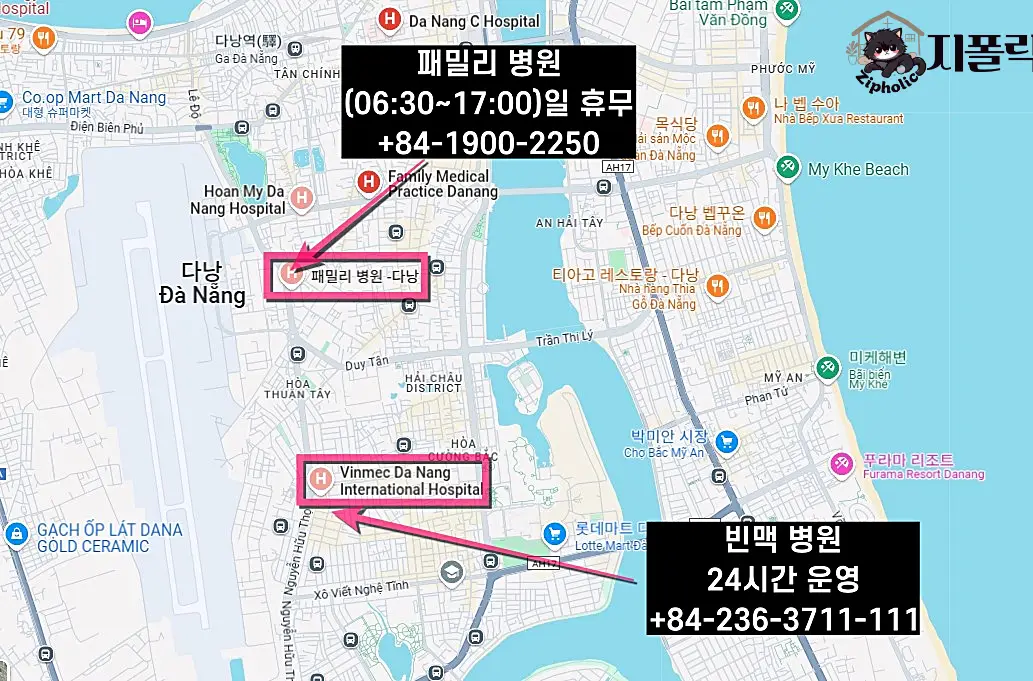 네이버 카페인 다낭도깨비 게시글에 약국 상비약, 약국정보, 베트남 병원 정보 등이 자세하게 작성되어 있으니