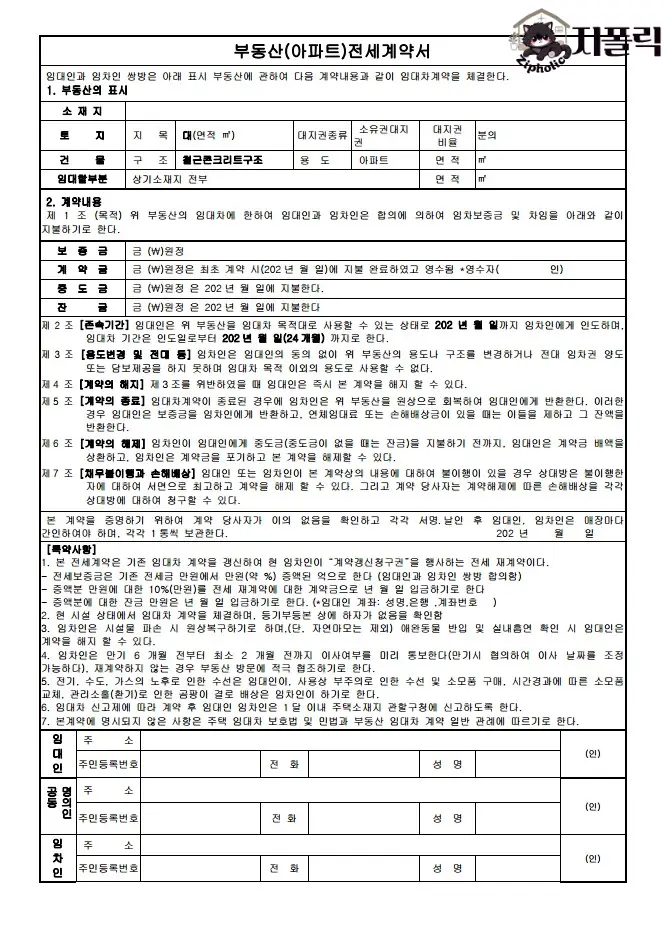부동산 계약서는 많이 있는데 위 자료가 필요하다면 아래의 파일을 다운로드하여서 사용하면 된다.