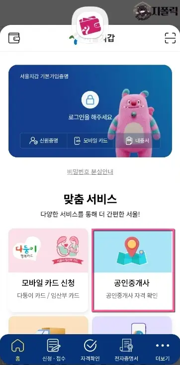 오늘은 서울지갑 어플을 사용하여 공인중개사 자격증명을